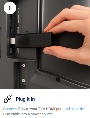 Flixy works with any TV that has an HDMI port, from older flat screens to the newest 4K models. You don’t need extra hardware, converters, or special remotes.